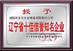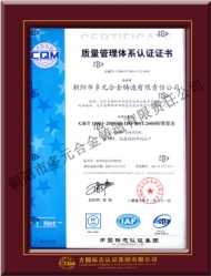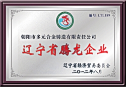 公司于2001年通過IS9001-2000質(zhì)量管理體系認(rèn)證,生產(chǎn)的多元牌高錳鋼鑄件于2005年榮獲"遼寧省名牌產(chǎn)品"稱號(hào)。